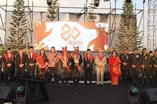 Bupati Karo Antonius Ginting dan Wakil Bupati Karo Komando Tarigan pada puncak HUT Kabupaten Karo ke - 80 di Stadion...