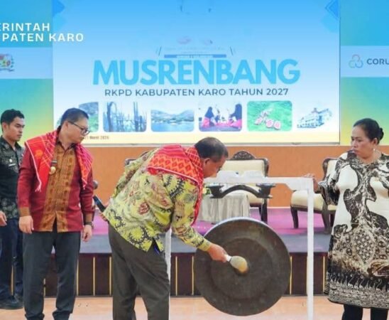 Bupati Karo Antonius Ginting didampingi Wakil Bupati Karo Komando Tarigan membuka secara resmi Musrenbanv RKPD Karo 2027 di Aula Rakoetta...