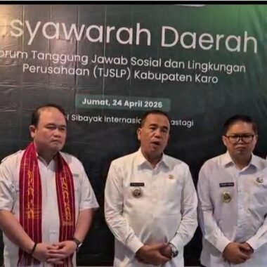 Bupati Karo Antonius Ginting Pengurus Forum TJSLBU Karo Periode 2026 - 2031 di HIS Berastagi, Jumat (24/04/2026) KARODAILY.id, Berastagi –...