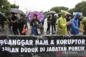 Di bawah guyuran hujan, refleksi awal tahun dibacakan. Pemerintah dianggap tidak serius menuntaskan penyelesaian kasus pelanggaran Hak Asasi Manusia (HAM). Pemerintah dinilai hanya fokus memberikan pemulihan dan ganti rugi tanpa ada pengungkapan kebenaran maupun proses hukum terhadap pelaku kejahatan.