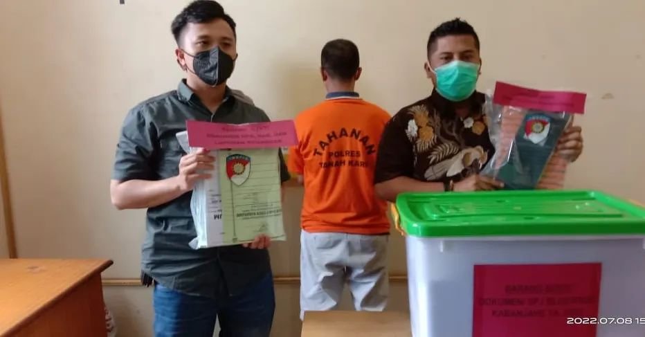 Tersangka Eron Ginting (menggunakan baju TSK) saat konfrensi pers di Mapolres Tanah Karo.(ist). KARODAILY.id, Kabanjahe- Sekian lama “berkelana”, mantan bendahara Rumah Sakit Umum (RSU) Kabanjahe Eron Ginting akhirnya harus meringkuk di dalam rumah tahanan sementara (RTS) Polres Tanah Karo. Status...