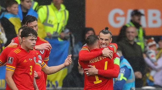 Selebrasi pemain Wales saat pertandingan playoff Piala Dunia 2022 kontra Ukraina di Stadion Cardiff, Wales, Minggu (5/6/2022). (AFP/Geoff). KARODAILY.id, Cardiff - Timnas Wales mencapai putaran final Piala Dunia 2022 setelah kemenangan emosional 1-0 atas Ukraina di Cardiff, Senin (6/6/2022)...