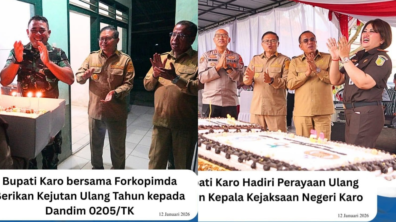 Bupati dan Wakil Bupati Karo Hadiri Perayaan Ultah Dandim 0205/TK dan Kajari Karo.(ist) KARODAILY.id, Kabanjahe – Bupati Karo, Brigjen Pol (Purn) Dr. dr. Antonius Ginting, Sp.OG., M.Kes., pada Senin (12/01/2026), menghadiri dua perayaan ulang tahun sederhana unsur Forum Koordinasi Pimpinan...