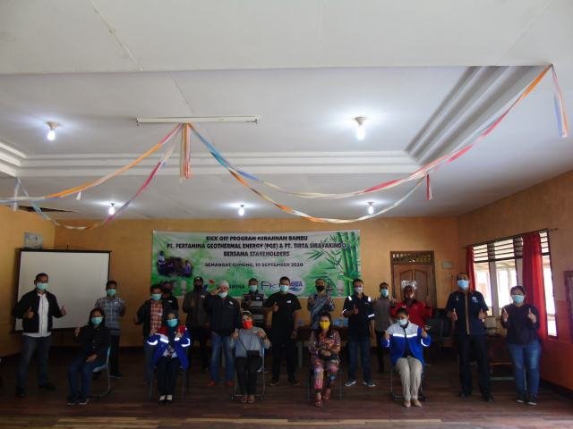 Kick off pelatihan kerajinan bambu oleh PT. TSI dan PGE Sibayak.(ist). KARODAILY.id, Berastagi - Dalam upaya pemberdayaan sumber daya lokal, PT. Tirta Sibayakindo (PT.TSI) - produsen air minum dalam kemasan bekerjasama dengan PT. Pertamina Geothermal Energy (PGE) gelar pelatihan Mbayu...