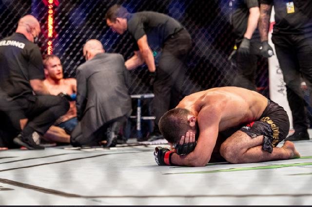 Petarung kelas ringan UFC, Khabib Nurmagomedov, bersujud setelah berhasil memenangkan pertarungan melawan Justin Gaethje pada ajang UFC 254, Minggu (25/10/2020).(ist/net). KARODAILY.id,Abu Dhabi - Khabib Nurmagomedov mengalahkan Justin Gaethje di UFC 254. Air matanya tak terbendung, 'The Eagle' menangis sejadi-jadinya mengingat...
