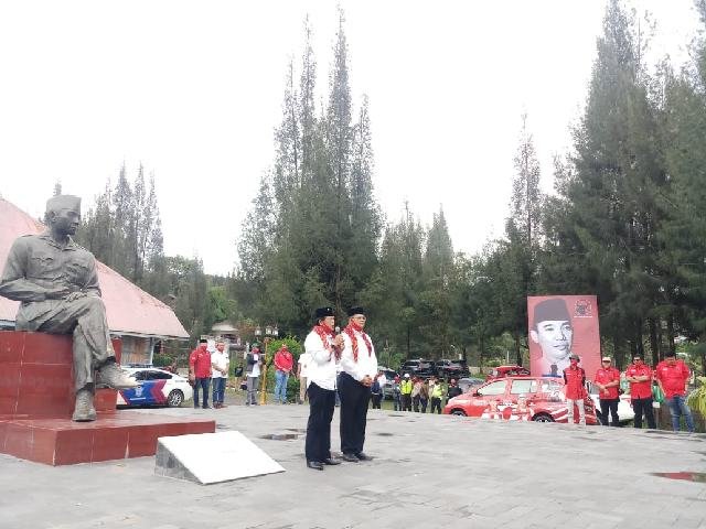 Iwan Depari dan Budianto Surbakti saat memberikan orasi di depan patung Bung Karno Desa Lau Gumba Berastagi.(ist). KARODAILY.id, Berastagi,-Bakal pasangan calon (Bapaslon) bupati dan wakil bupati Karo dari PDI Perjuangan Iwan Depari - Budianto Surbakti mengaku akan setia dijalur perjuangan...