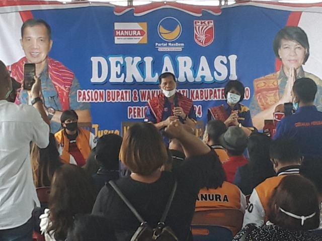 Jusua Ginting dan Saberina Tarigan menyampaikan orasi pada deklarasi pemenangan di Museum Pahlawan Nasional Djamin Ginting.(int). KARODAILY.id, Tiga Panah - Sehari setelah mendaftar di KPU Karo, bakal pasangan calon bupati dan wakil bupati Karo Brigjen TNI (Purn) Jusua Ginting -...