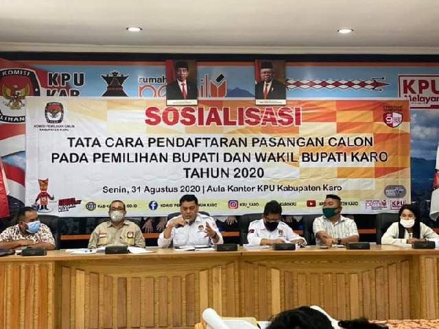 KPU Karo tegaskan penggunaan masker kepada Bapaslon Pilkada Karo 2020 yang akan mendaftar.(int/FB/KPU Karo). KARODAILY.id, Kabanjahe - Komisi Pemilihan Umum (KPU) Karo himbau agar masing - masing bakal pasangan calon (Bapaslon) bupati dan wakil bupati Karo dan tim serta rombongan...