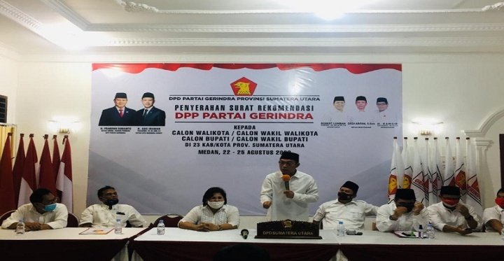 Ketua DPD Partai Gerindra Sumut Gus Irawan Pasaribu memberikan sambutan kepada Bacalon Pilkada di Sumut termasuk Bacalon Bupati Karo Cory Sebayang. (net/sipayo.com). KARODAILY.id, Medan- Cory Sebayang mengaku sangat bangga telah menerima mandat DPP dan DPD Gerindra maju sebagai calon Bupati...