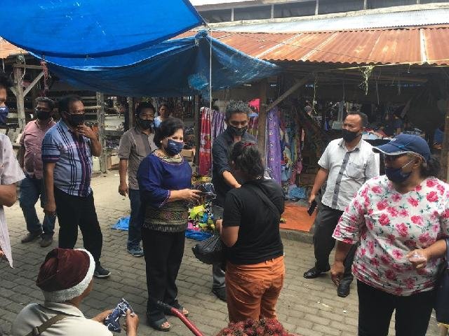 Cory dan Theo didampingi tim ketua dan bendahara tim pemenangan Dinasti Sitepu dan Almina Bangun membagikan masker di Pekan Lau Baleng . (karodaily/nanang). KARODAILY.id,Lau Baleng - Bakal calon bupati dan wakil bupati Karo Cory Sebayang - Theopilus Ginting, Jumat (21/08/2020)...