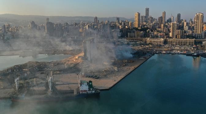 Gambar drone menunjukkan asap dari tempat ledakan yang mengguncang pelabuhan Beirut, Lebanon, Rabu (5/8/2020). Ledakan terjadi di area pelabuhan, di tempat penyimpanan bahan peledak, amonium nitrat. (AP Photo/Hussein Malla) KARODAILY.id, Jakarta - Jumlah korban meninggal akibat ledakan di Beirut, Lebanon...
