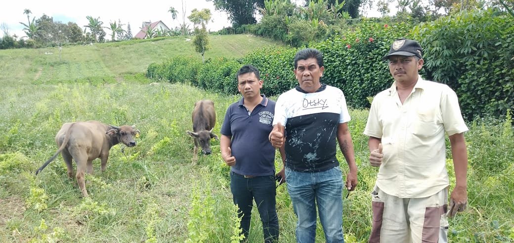 Ketua Kelompok Tani Sada Nioga Ridom Ginting ( pakai topi) usai menerima bantuan ternak yang kini telah dibagikan kepada masing - masing anggota Poktan.(KARODAILY.idm/Nanang). KARODAILY.idm,Kabanjahe: Masyarakat petani dan peternak di Kabupaten Karo sampaikan apresiasi kepada Bob Andika Mamana Sitepu,SH atas...