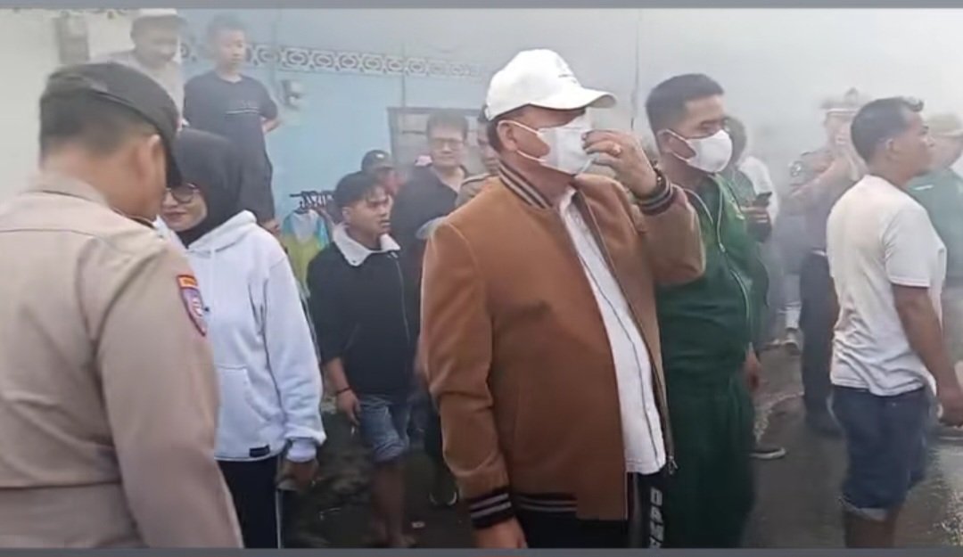 Bupati Karo Antonius Ginting di lokasi kebakaran Gg Pelita, Kelurahan Tambak Lau Mulgab II, Berastagi.(ist) KARODAILY.id, Berastagi - Bupati Karo Brigjen Pol (Purn) Dr.dr.Antonius Ginting, Sp.OG, M.Kes turun langsung ke lokasi kebakaran yang menghanguskan 4 unit rumah warga di Gg...