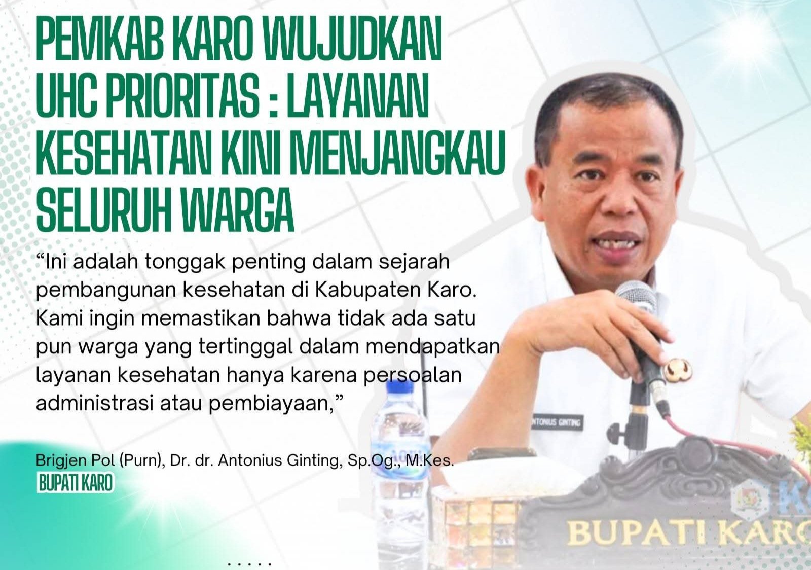 Bupati Karo Antonius Ginting.(ist) KARODAILY.id, Kabanjahe – Pemerintah Kabupaten Karo resmi mengumumkan pencapaian Universal Health Coverage (UHC) Prioritas, sebagaimana ditetapkan BPJS Kesehatan bersama Kementerian Kesehatan RI. Mulai 1 September 2025, sebanyak 432.433 jiwa atau mayoritas penduduk Karo telah tercakup dalam...