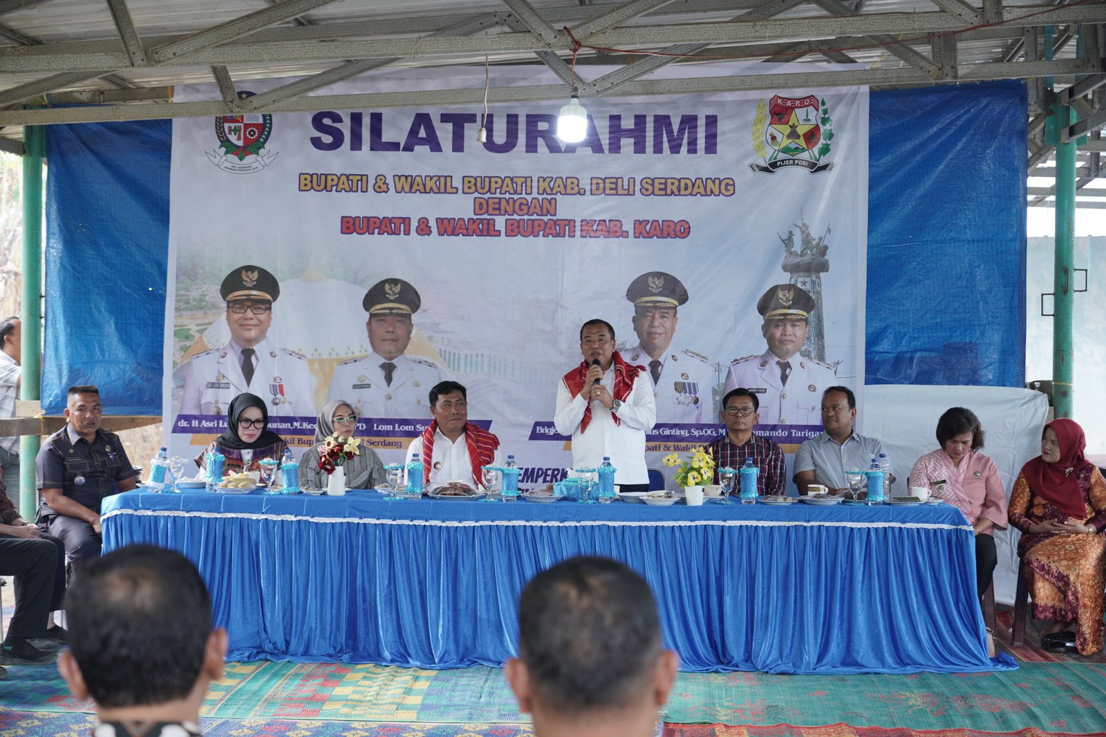 Bupati Karo Antonius Ginting sampaikan sambutan saat pertemuan koordinasi dengan Wakil Bupati Deli Serdang Lom Lom Soewondo di Desa Liang Pematang, Kecamatan STM Hulu, Deli Serdang.(ist) KARODAILY.Deli Serdang - Pemerintah Kabupaten (Pemkab) Karo dan Pemkab Deli Serdang sepakat mempercepat realisasi...