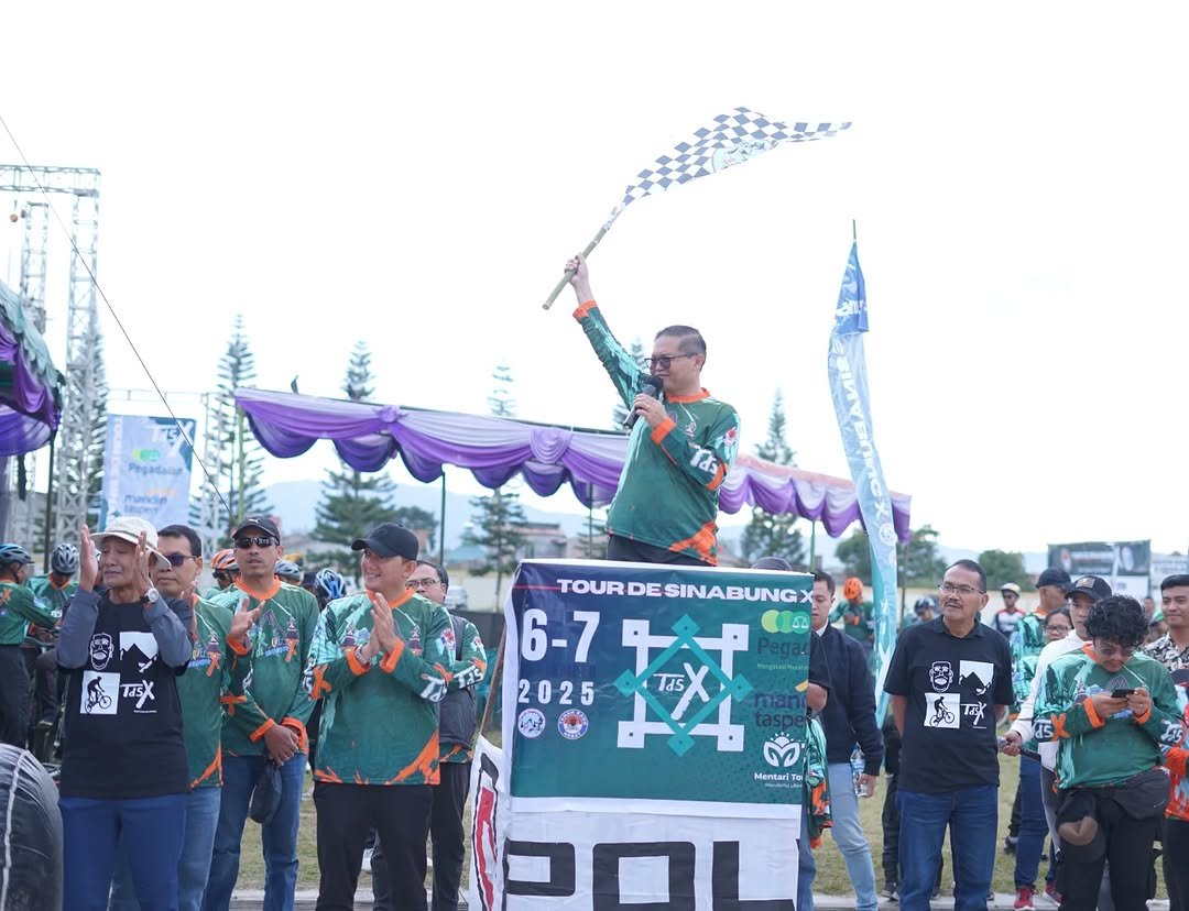 Wakil Bupati Karo Komando Tarigan secara resmi lepas peserta Tour de Sinabung X 2025.(ist) KARODAILY.id, Kabanjahe – Wakil Bupati Karo Komando Tarigan, SP. Secara resmi melepas 800 peserta Tour de Sinabung X Tahun 2025 di Lapangan Samura, Kabanjahe, Minggu (07/09/2025).Para...