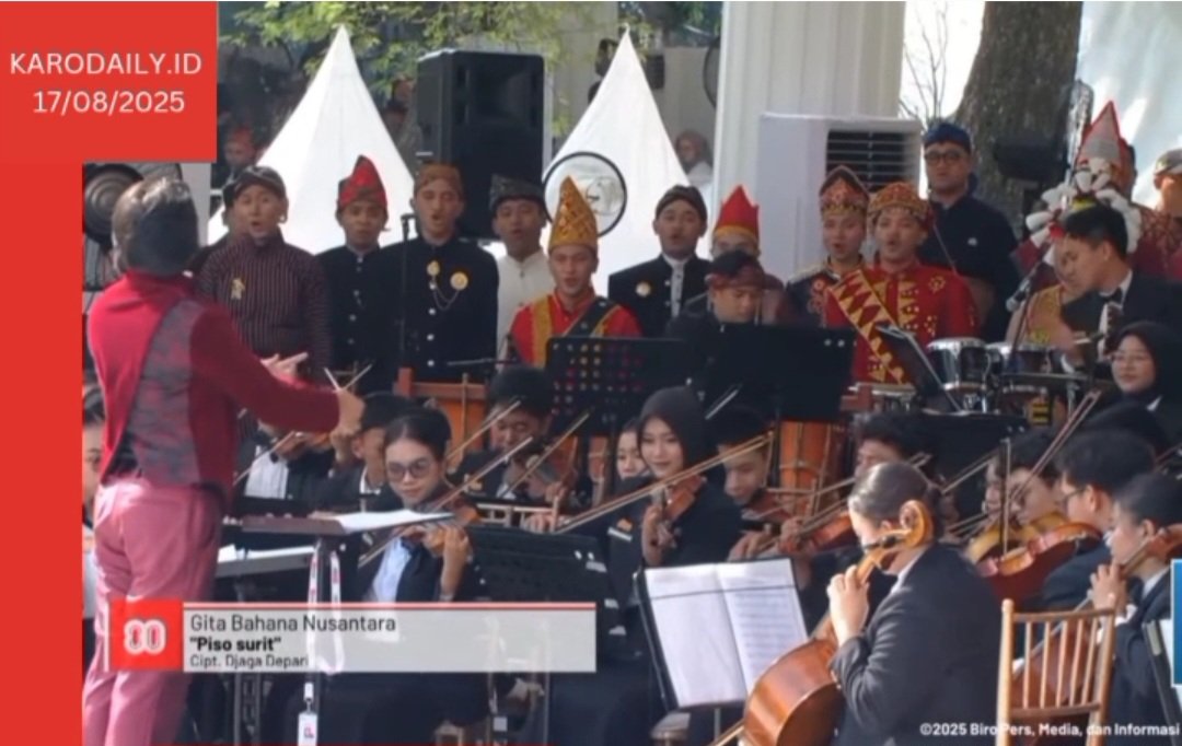 Lagu Piso Surit dibawakan Paduan Suara dan Orkestra Bahana Suara Nusantara dalam Peringatan Detik-detik Proklamasi HUT RI ke - 80 di Istana Negara Jakarta.(ist) KARODAILY.id, Jakarta - Lagu perjuangan dan lagu daerah Karo, Sumatera Utara, “Piso Surit”, karya Komponis Djaga...