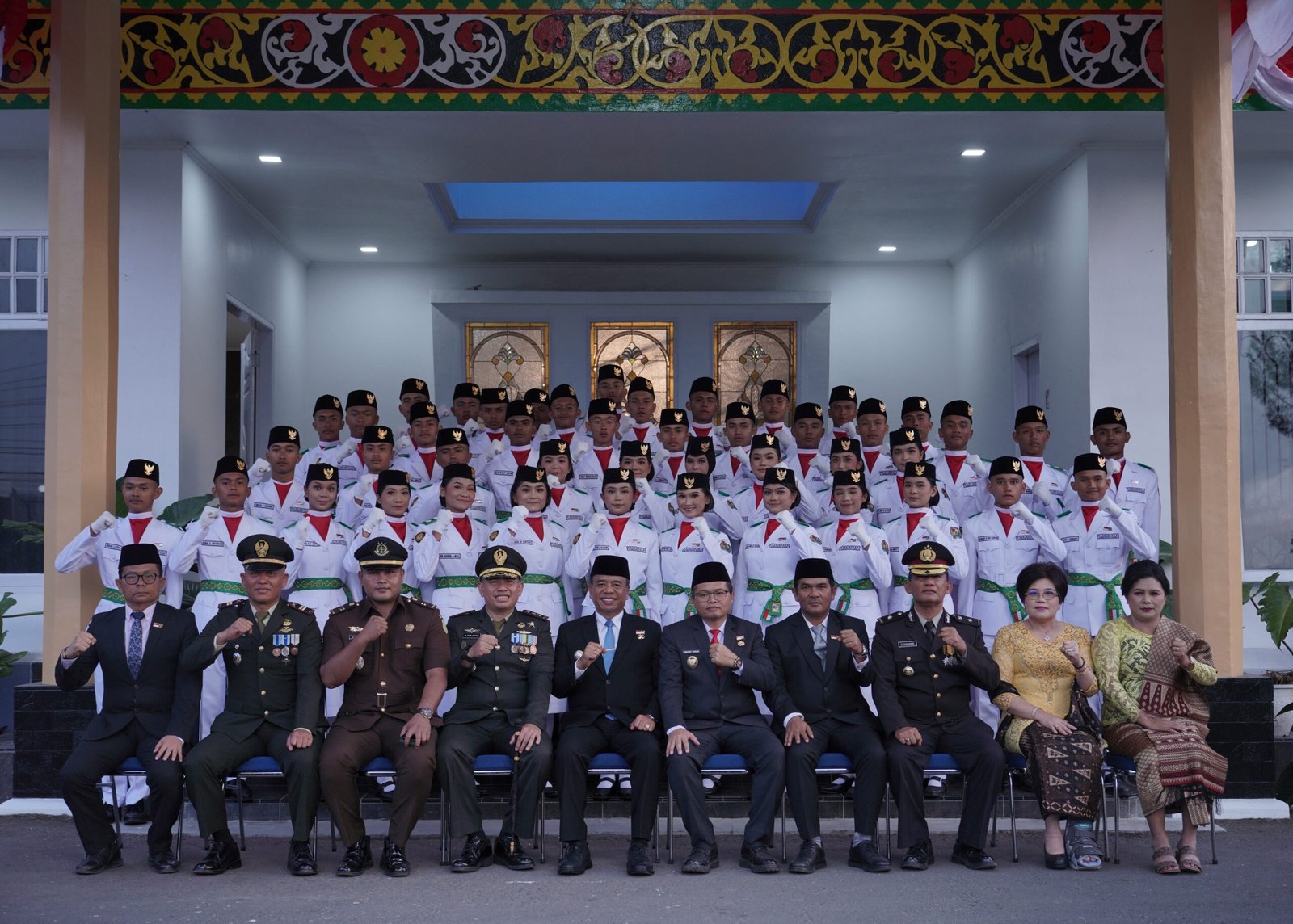 Bupati Karo Antonius Ginting dan Wakil Bupati Komando Tarigan serta Forkopimd Karo dan Ketua TP PKK Karo Ny. Roswitha Antonius Ginting dan Ketua Bidang I TP PKK Karo Ny. Dahlia Komando Tarigan bersama 45 Anggota Paskibraka Karo Tahun 2025.(ist) KARODAILY.id,...