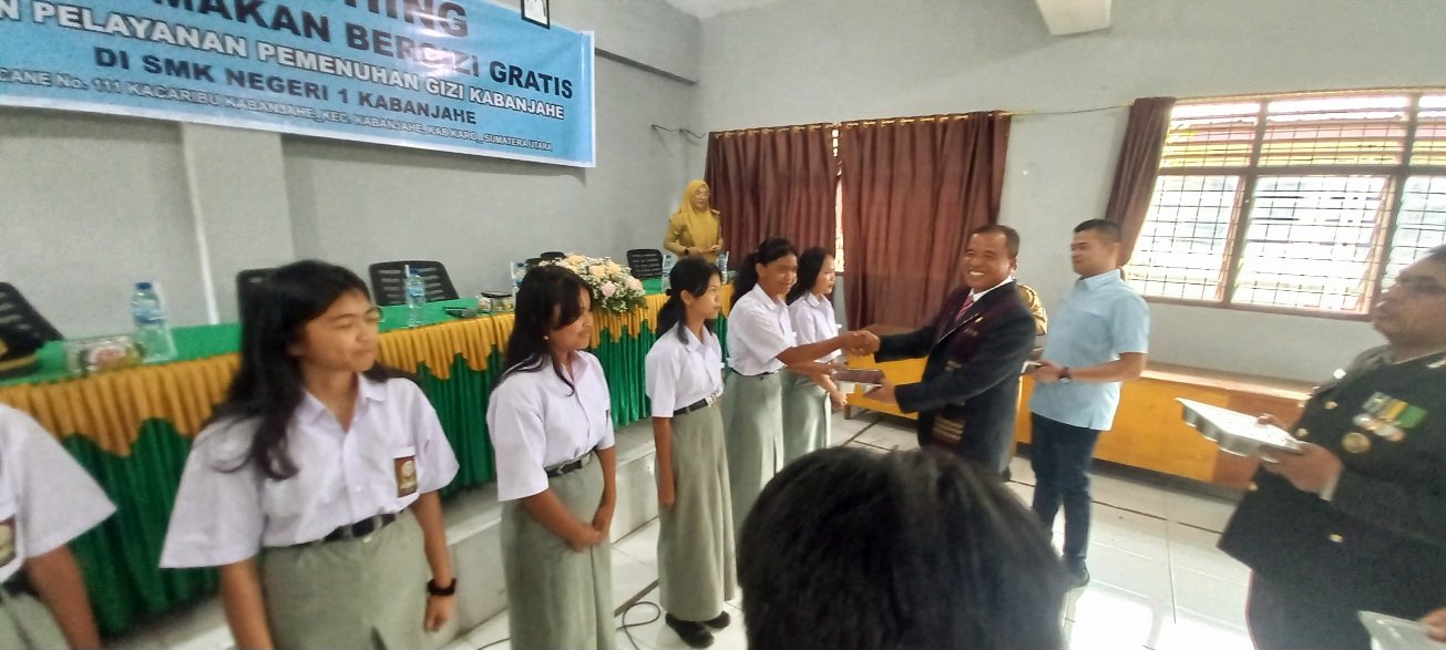 Bupati Karo Antonius Ginting serahkan secara simbolis makan bergizi gratis ke siswi SMK Negeri I Kabanjahe.(karodaily/nanang) KARODAILY.id, Kabanjahe - Bupati Karo Brigjen Pol (P) Dr.dr. Antonius Ginting,Sp.OG,M.Kes, Senin (11/08/2025) hadiri launching program nasional Makan Bergizi Gratis (MBG) di Sekolah Menengah...