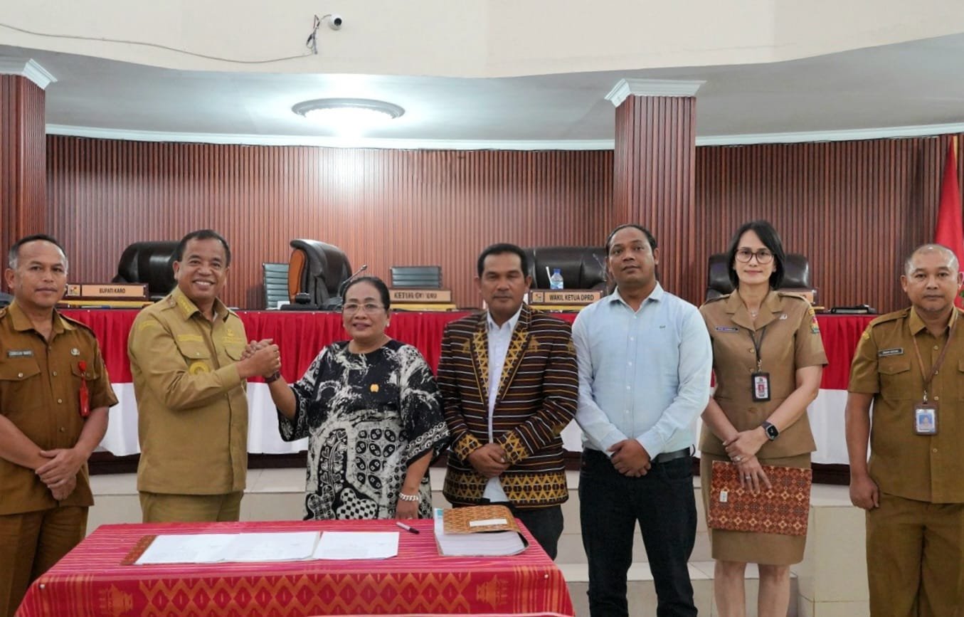 Bupati Karo Antonius Ginting dan Ketua DPRD Karo Iriani Br Tarigan tampak kompak usai penandatangan keputusan bersama terkait Ranperda RPJMD Karo 2025 -2029.(ist) KARODAILY.id, Kabanjahe - Bupati Kabupaten Karo Brigjen Pol (P) Dr. dr Antonius Ginting, Sp.OG, M.Kes sampaikan pidato...