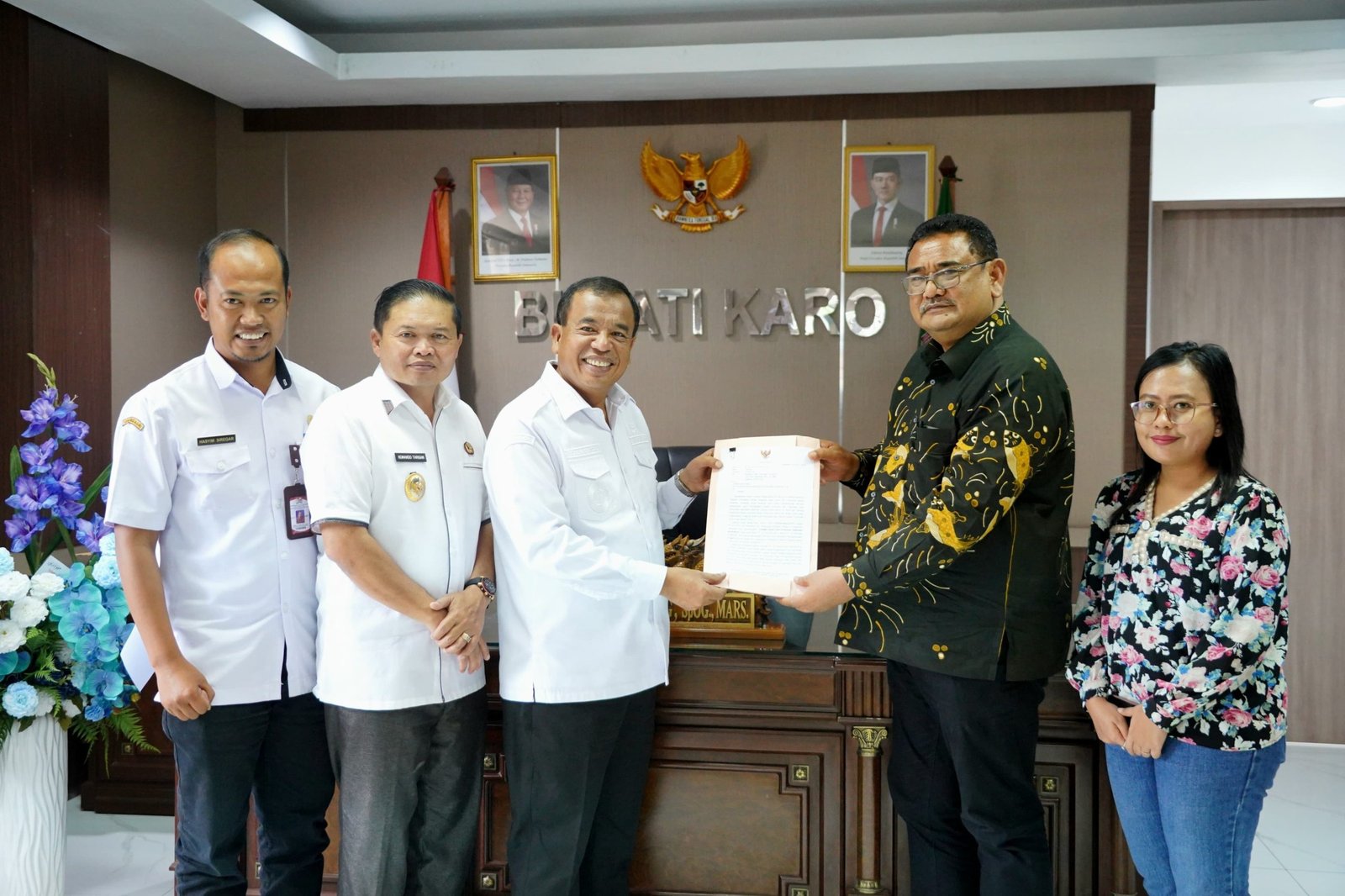 Bupati Karo Antonius Ginting diwakili Kadis Perkimtan Karo Jhon Karnanta Sembiring (no 3 kanan) bersama Menteri PKP RI Maruarar Sirait dan Gubsu Bobby Nasution.(ist) KARODAILY.id, Jakarta - Bupati Kabupaten Karo Brigjen Pol (P) Dr.dr. Antonius Ginting, Sp.OG,M.Kes diwakili Kepala Dinas...