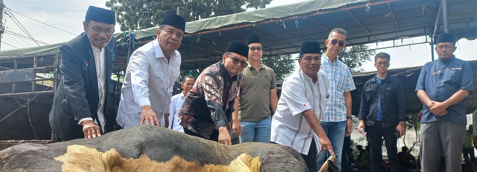 Bupati Karo Brigjen Pol (P) Dr.dr. Antonius Ginting, Sp.OG, M.Kes dan Wakil Bupati Karo Komando Tarigan,SP bersama jajaran dan BKM Masjid Agung Karo saat menyerahkan dan mengikuti proses penyembelihan hewan qurban BKP Presiden RI di Masjid Agung Kabanjahe.(karodaily) KARODAILY.id, Kabanjahe...