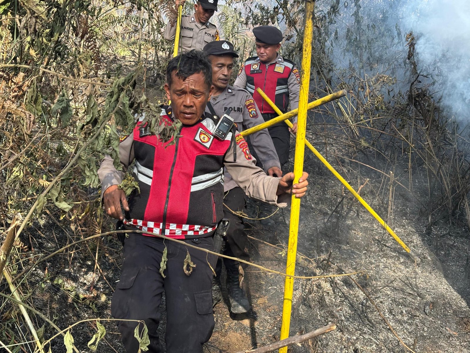 Upaya pemadaman api di kawasan semak belukar Hutan Deleng Ganjang, Desa Serdang, Barus Jahe.(ist) KARODAILY.id, Barus Jahe - Personel gabungan dari Satuan Samapta Polres Tanah Karo bersama Polsek Barusjahe dan unsur TNI serta masyarakat berhasil padamkam kebakaran hutan (semak belukar)...