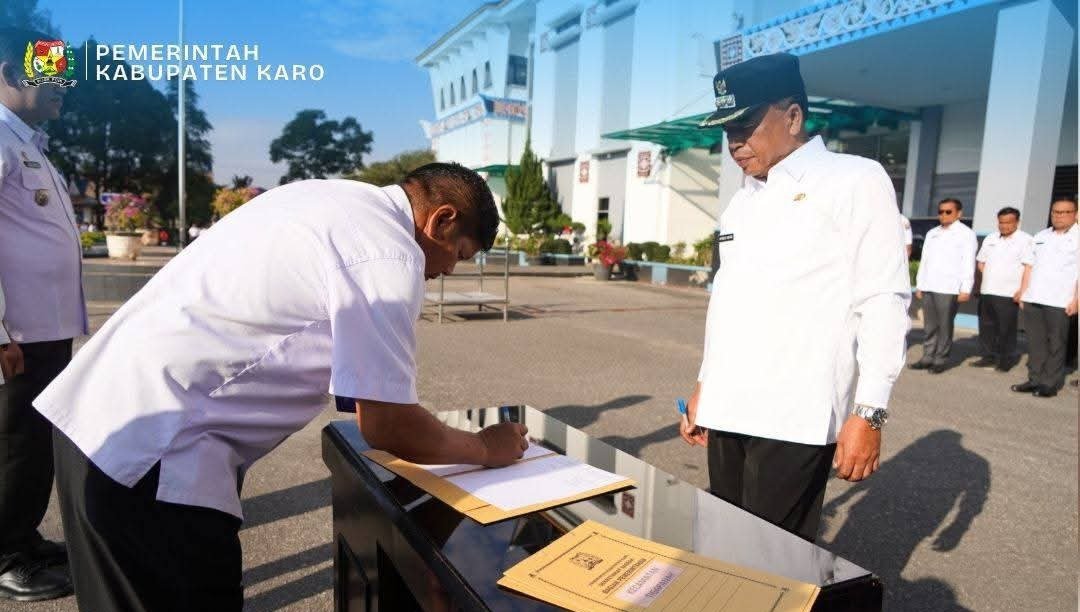 Bupati Karo Antonius Ginting menyaksikan langsung penandatanganan Fakta Integritas lima kecamatan prioritas yang ditetapkan sebagai pilot project pengembangan pariwisata.(ist) KARODAILY.id, Kabanjahe – Pemerintah Kabupaten Karo terus memperkuat sektor pariwisata sebagai motor penggerak ekonomi daerah. Hal ini ditegaskan oleh Bupati Karo,...
