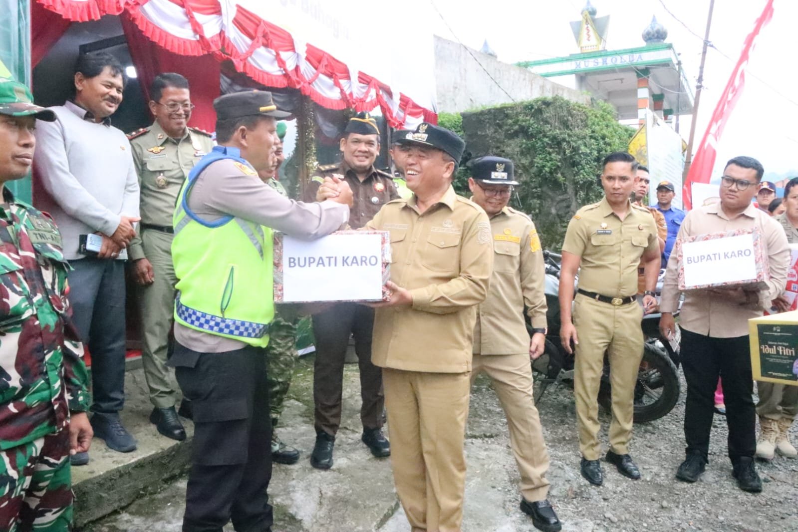 Bupati Karo bersama unsur Forkopimda serahkan parcel lebaran 2026 kepada petugas Ops Ketupat Toba 2026.(ist) KARODAILY.id, Berastagi – Wujud kepedulian terhadap para petugas yang tetap siaga di momen Hari Raya Idul Fitri, Forum Koordinasi Pimpinan Daerah (Forkopimda) Kabupaten Karo turun...