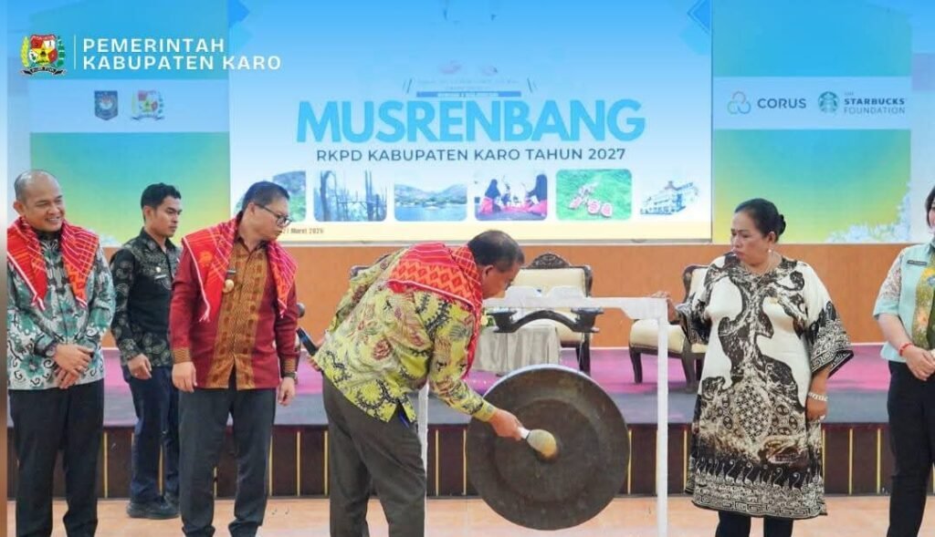 “Kita patut bersyukur bahwa kinerja pembangunan Kabupaten Karo menunjukkan arah yang baik. Tetapi saya ingin tegaskan, kita tidak boleh cepat puas,” ujar Bupati saat membuka Musyawarah Perencanaan Pembangunan (Musrenbang) RKPD Tahun 2027 di Aula Rakoetta Brahmana, Kantor Bupati Karo, Kabanjahe, Jumat (27/03/2026).