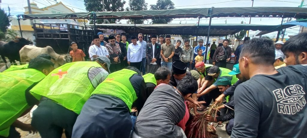 KARODAILY.id, Kabanjahe – Bupati Karo Brigjen Pol (P) Dr.dr. Antonius Ginting, Sp.OG, M.Kes dan Wakil Bupati Karo Komando Tarigan,SP, Jumat (06/06/2025), serahkan 3 ekor sapi dalam rangka perayaan Hari Raya Idul Adha 1446 H/2025 di Masjid Agung Kabupaten Karo di Kabanjahe.
