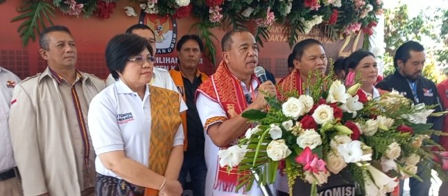 Pasangan Cabup dan Cawabup Karo Antonius Ginting dan partai pengusung sampaikan keterangan pers usai mendaftar ke KPU Karo.(nanang). KARODAILY.id, Kabanjahe - Pasangan calon bupati dan wakil bupati Karo, Brigjen Pol (P) Antonius Ginting – Komando Tarigan bersama 7 partai politik...