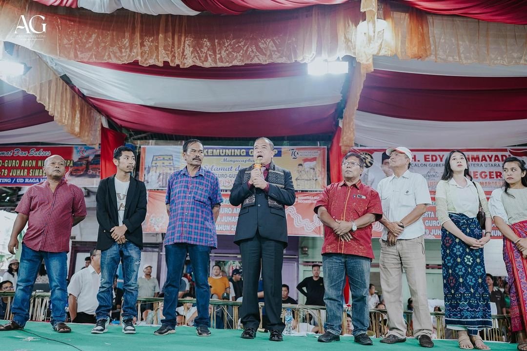 Bacalon bupati Karo, Antonius Ginting bersama tim Karo Erdilo sampaikan sambutan di kerja tahun desa Juhar Simbelang.(ist) KARODAILY.id, Juhar - Bakal calon bupati Karo, Brigjen Pol (P) Dr.dr Antonius Ginting, Sp.OG, M.Kes, lewati jadwal padat seiring peringatan HUT RI ke...