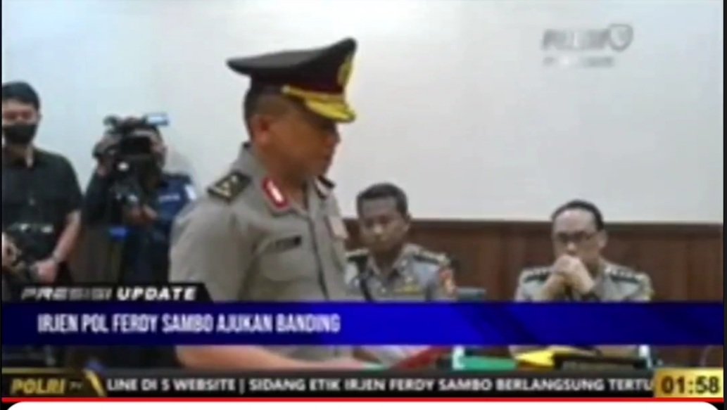 Irjen Pol Ferdy Sambo mengajukan banding atas putusan PDTH yang ia terima.(polritvradio). KARODAILY.id, Jakarta - Sidang Komisi Kode Etik Polisi (KKEP) memutuskan memberhentikan tidak dengan hormat Irjen Ferdy Sambo karena melanggar kode etik kepolisian. Merespons hal tersebut, Ferdy mengajukan banding....
