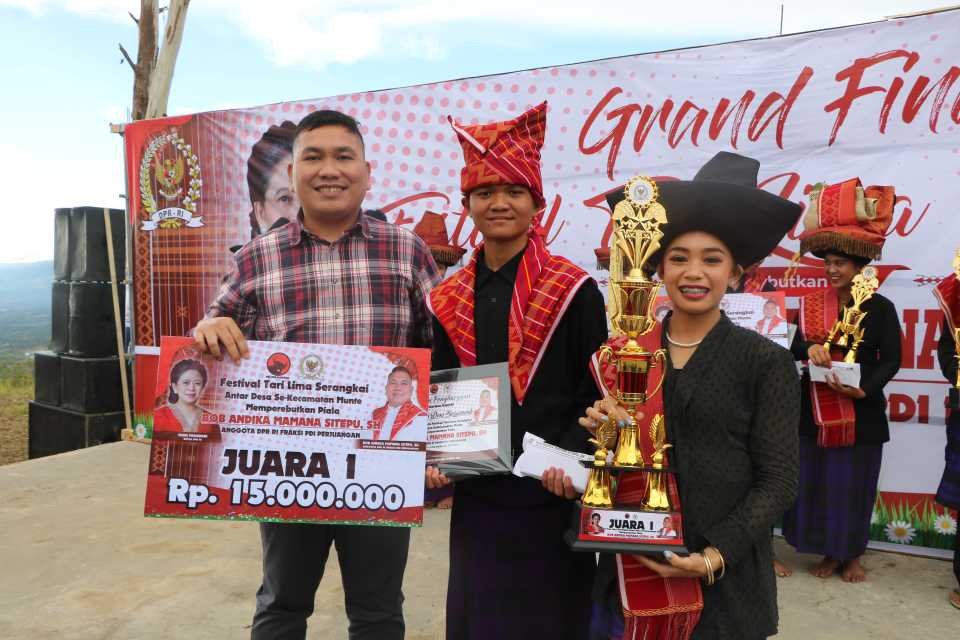 Bob Andika Mamana Sitepu,SH berikan hadiah kepada pemenang pertama Festival Tari Lima Serangkai Antar Desa Se-Kec. Munte.(edhi surbakti). KARODAILY.id, Munthe Karo – Sukses besar, Festival Tari Lima Serangkai Antar Desa Se-Kecamatan Munte Piala Bob Andika Mamana Sitepu bakal naik level....