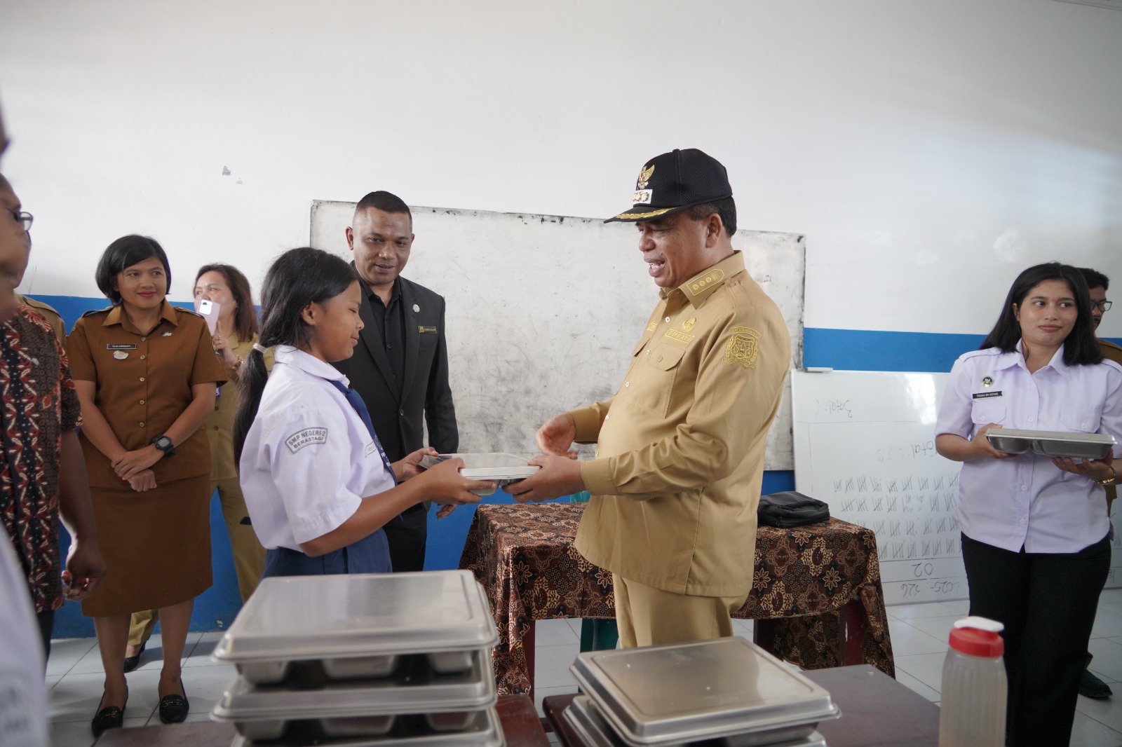 Bupati Karo secara simbolis serahkan makan bergizi gratis kepada siswi di SMP Negeri 2 Berastagi.(ist) KARODAILY.id, Berastagi - Bupati Karo Brigjen Pol (P) Dr.dr. Antonius Ginting,Sp.OG,M.Kes, Senin (14/07/2025) hadiri launching program nasional Makan Bergizi Gratis (MBG) di Sekolah Menengah Pertama...