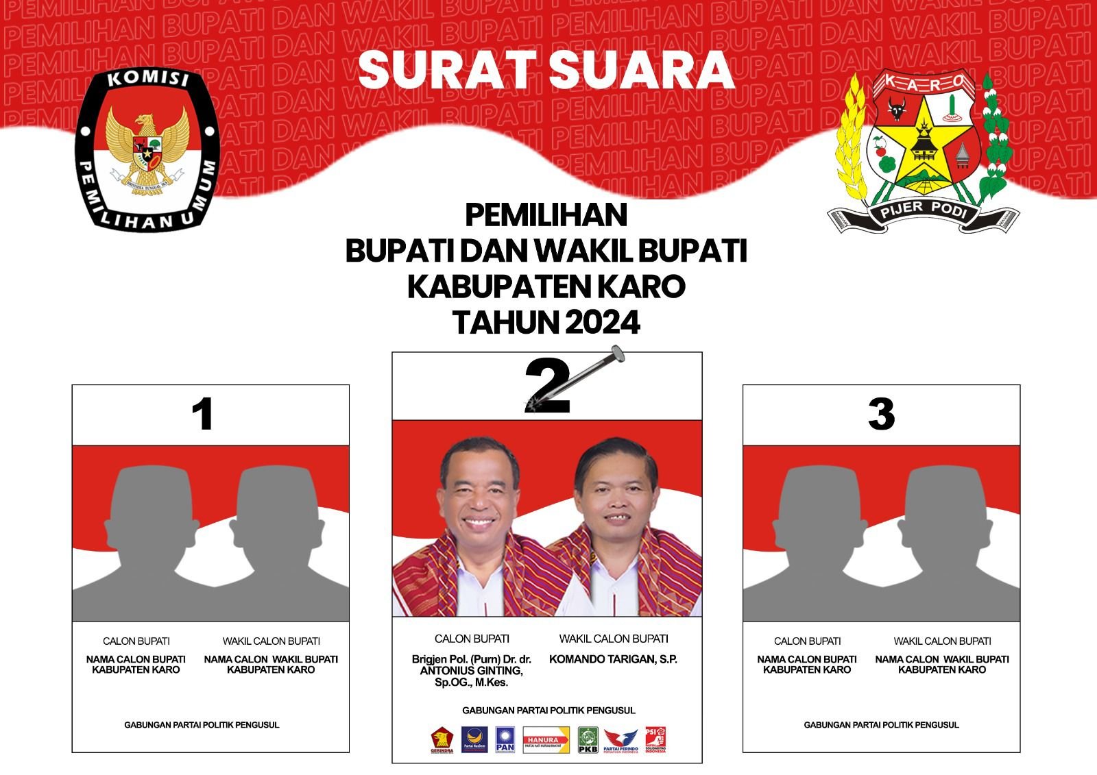Contoh surat suara Pilkada Karo tahun 2024.(ist) KARODAILY.id, Berastagi –Pasangan calon bupati dan calon wakil bupati Karo 2024 Antonius Ginting – Komando Tarigan memiliki nilai lebih dalam memimpin Kabupaten Karo. Hal ini selaras dengan kuatnya peta dukungan kepada Antonius –...