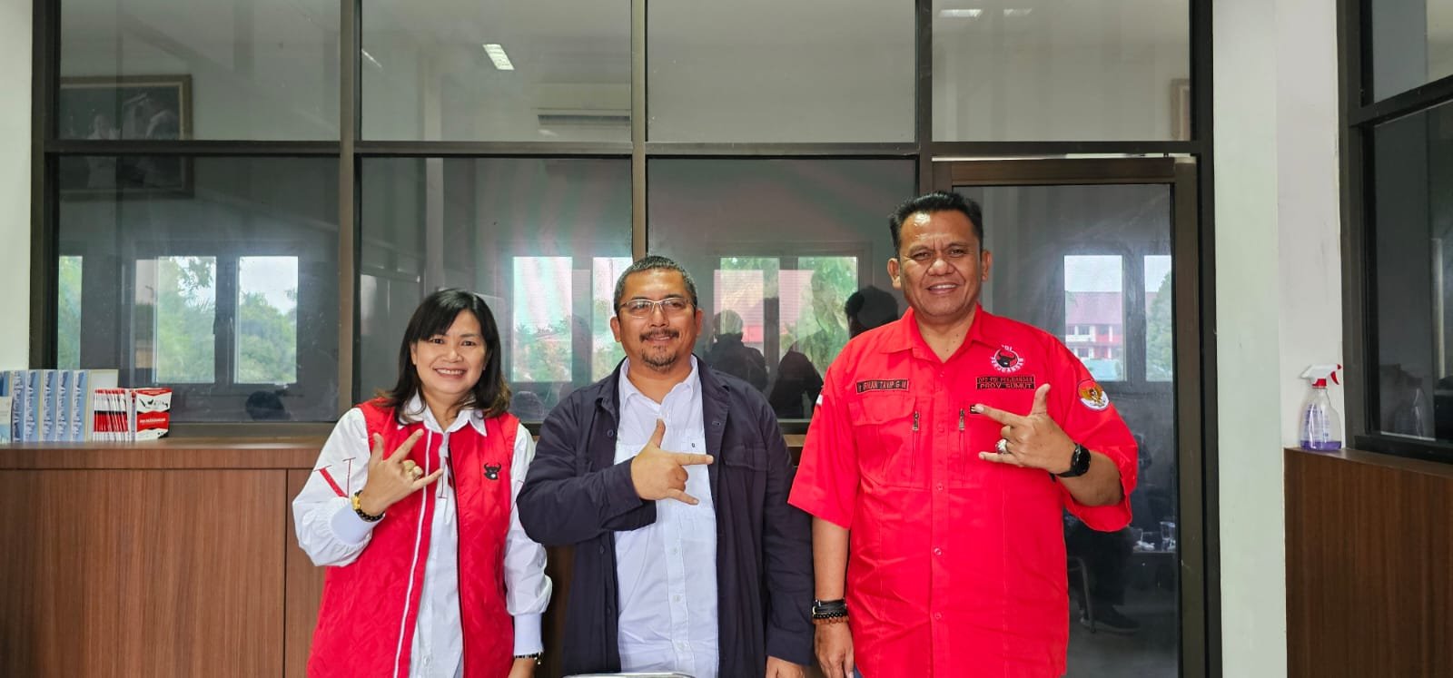 Rudi Sembiring,S.Th bersama fungsionaris DPD PDI Sumut Sarma Hutajulu dan Irvan Tavip Ginting.(ist) KARODAILY.id, Medan -Bakal calon bupati Karo Rudi Sembiring Meliala, S.Th, Rabu (12/06/2024) ikuti fit and proper test di DPD PDI Perjuangan Sumatera Utara, jalan Djamin Ginting, Medan....