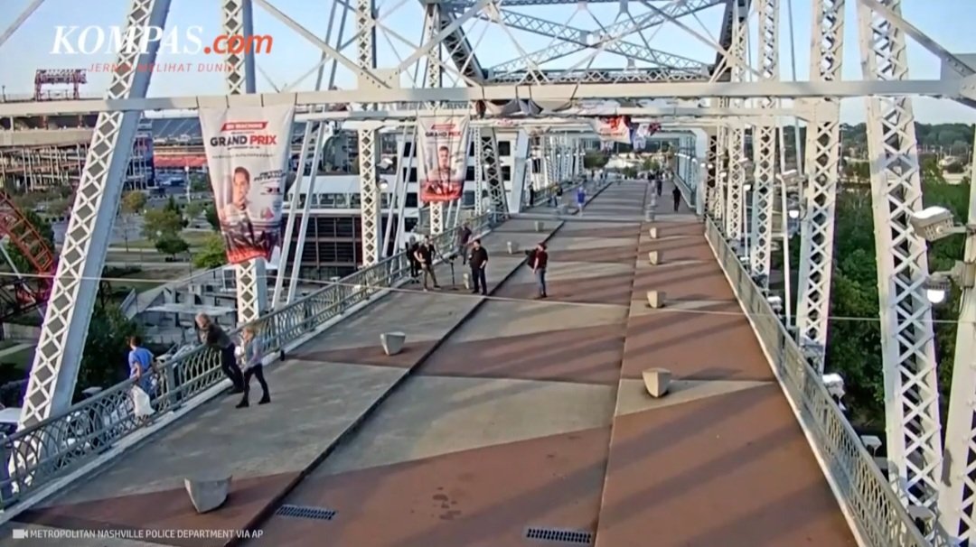 Vokalis band rock Bon Jovi, Jon Bon Jovi (paling kanan), bersama seorang asisten produksi video (tengah), sedang mendekat dan berikutnya meyakinkan seorang perempuan yang diduga akan terjun dari sebuah jembatan, untuk mengurungkan niatnya, Selasa (10/9/2024). (Sumber: Nashville Metro Police) KARODAILY.id,...