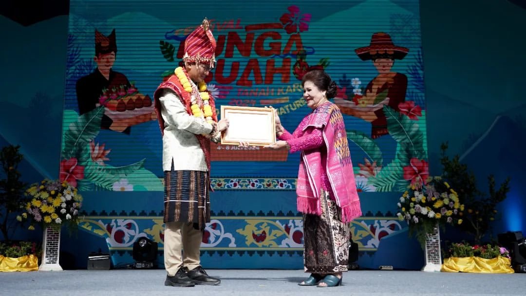 Menparekraf RI, Sandiaga Solahuddin Uno serahkan piagam KE N untuk event Festival Bunga dan Buah kepada Bupati Karo, Cory Sebayang.(ist) KARODAILY.id, Berastagi - Bupati Karo, Cory Sriwaty Sebayang, berhasil tempatkan Festival Bunga dan Buah (FBB) Karo sebagai even terbaik Kharisma...