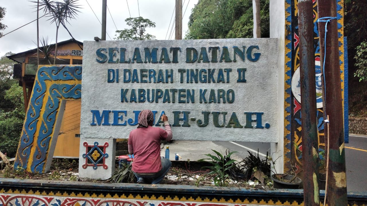 Pengecatan gapura selamat datang di Perbatasan Karo - Deli Serdang tepatnya Penatapen Doulu.(ist) KARODAILY.id, Berastagi - Tindaklanjuti instruksi Bupati Karo, Camat Berastagi David Cardona Sembiring, kebut optimalisasi penataan keindahan gapura selamat datang di perbatasan Karo – Deli Serdang dengan melakukan...