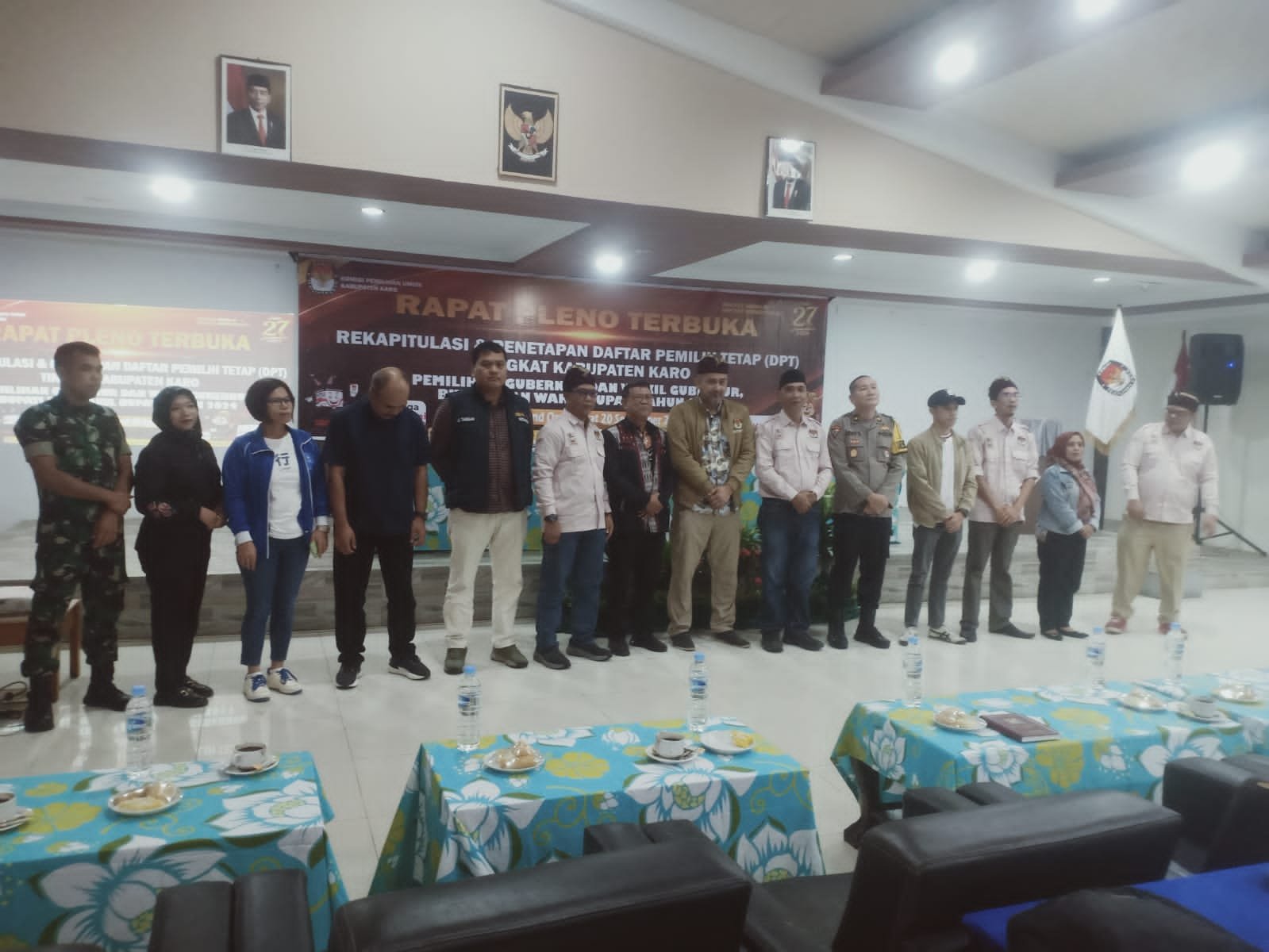 KPU Karo bersama Bawaslu Karo dan pihak terkait usai Rapat Pleno Terbuka Rekapitulasi dan Penetapan Daftar Pemilih Tetap (DPT) untuk Pemilihan Gubernur dan Wakil Gubernur, serta Bupati dan Wakil Bupati Karo 2024.(ist) KARODAILY.id, Berastagi - Daftar pemilih tetap pada Pilkada...