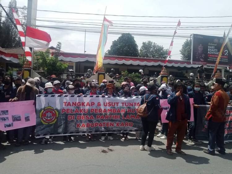 UNJUK RASA: Massa Karang Taruna Desa Pertibi Lama, Merek, berunjuk rasa di depan Mapolres Karo, Jumat (5/8/2022), mendesak perambahan hutan di desa mereka diusut. (sib/marlintosihotang). KARODAILY.id, Kabanjahe - Karang Taruna Desa Pertibi Lama, Kecamatan Merek, Kabupaten Karo,Jumat siang (05/08/2022) gelar...