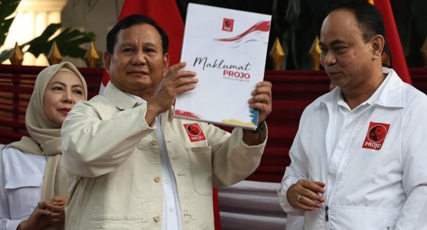 Bacapres Prabowo Subianto menerima maklumat dukungan dari Ketua Umum Relawan Projo Budi Arie Setiadi.(ist/igprabowo) KARODAILY.id, Jakarta - Organisasi Massa Pro Jokowi alias Projo telah resmi memberikan dukungan untuk bakal calon presiden dari Koalisi Indonesia Maju Prabowo Subianto. Deklarasi ini dilakukan...