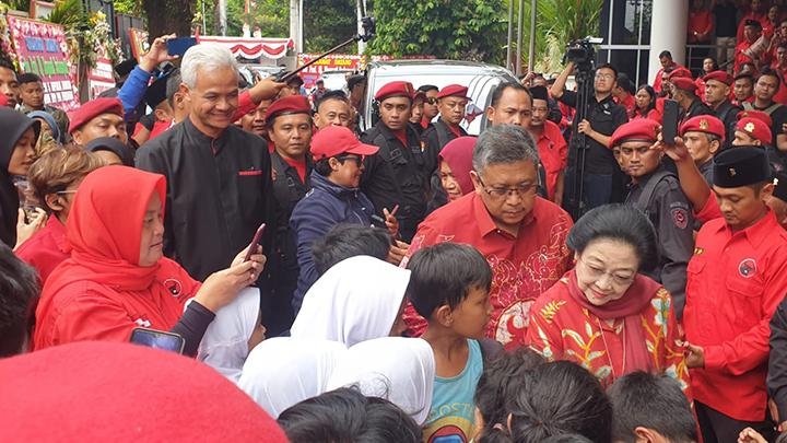 Ketua umum PDIP Megawati Soekarno Putri dan Bakal Calon Presiden Ganjar Pranowo menyapa warga di area kantor PDIP Yogyakarta Selasa (22/8). Tempo/Pribadi Wicaksono KARODAILY.id, Jogjakarta - Ketua Umum Partai Demokrasi Indonesia Perjuangan (PDIP) Megawati Soekarno Putri turut menyentil langkah kader...
