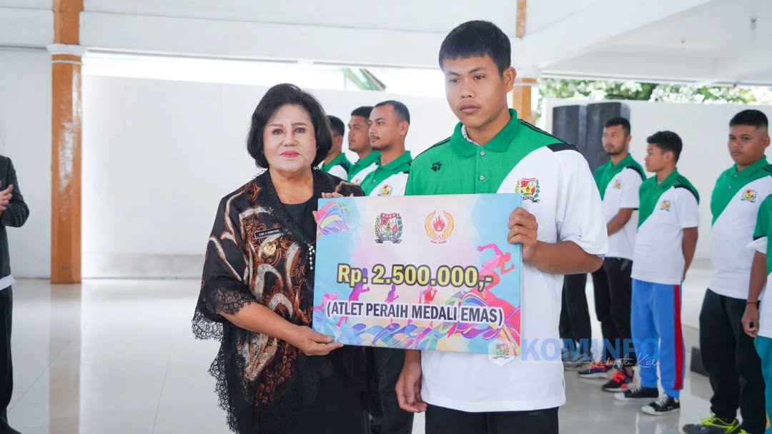 Bupati Karo, Cory Sebayang memberikan penghargaan kepada atlet Karo peraih medali dalam event olahraga di tingkat propinsi.(kominfokaro) KARODAILY.id,Kabanjahe - Pemerintah Kabupaten Karo melalui Dinas Kebudayaan Pemuda dan Olahraga serta Pariwisata memberikan penghargaan kepada atlet dan pelatih berprestasi di Jambur Pemkab...
