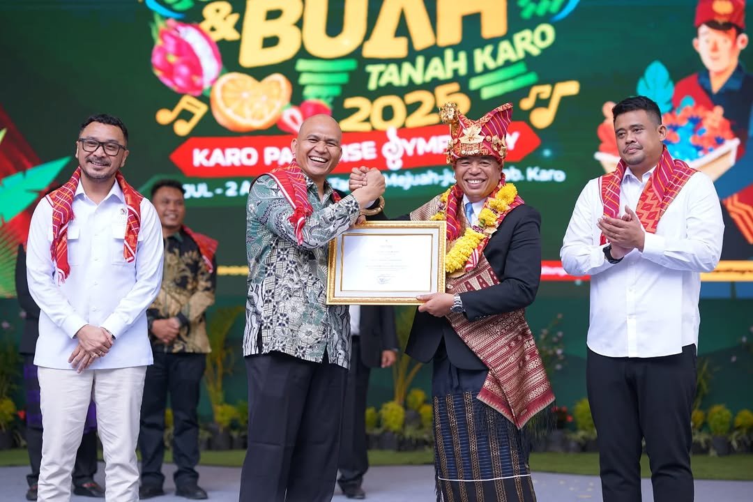 Bupati Karo Antonius Ginting Terima Piagam KEN FBB Karo 2025 dari Menteri Pariwisata RI didampingi Wamen Kebudayaan RI Giring Ganesha dan Gubsu Bobby Nasution.(ist). KARODAILY.id, Berastagi – Bupati Karo Brigjen Pom (Purn) Antonius Ginting,Sp.OG, M.Kes, menerima piagam Karisma Event Nusantara...
