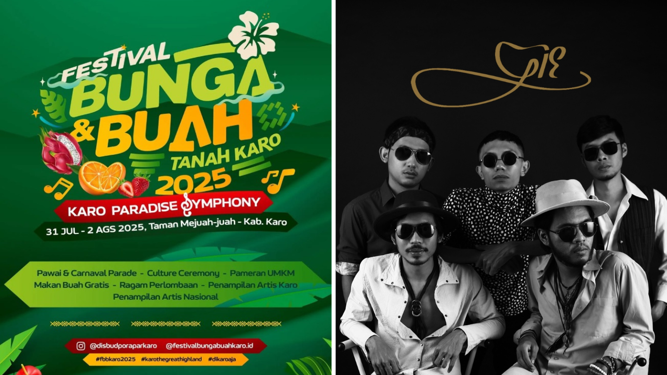 GIE Band bakal ramaikan Festival Bunga dan Buah Karo 2025.(festivalbungadanbuahid/ gieofficial website) KARODAILY.id, Berastagi - Festival Bunga dan Buah (FBB) Karo seminggu ke depan, tepatnya tanggal 31 Juli hingga 2 Agustus 2025 bakal berlangsung di Taman Mejuah juah, Berastagi, Karo...