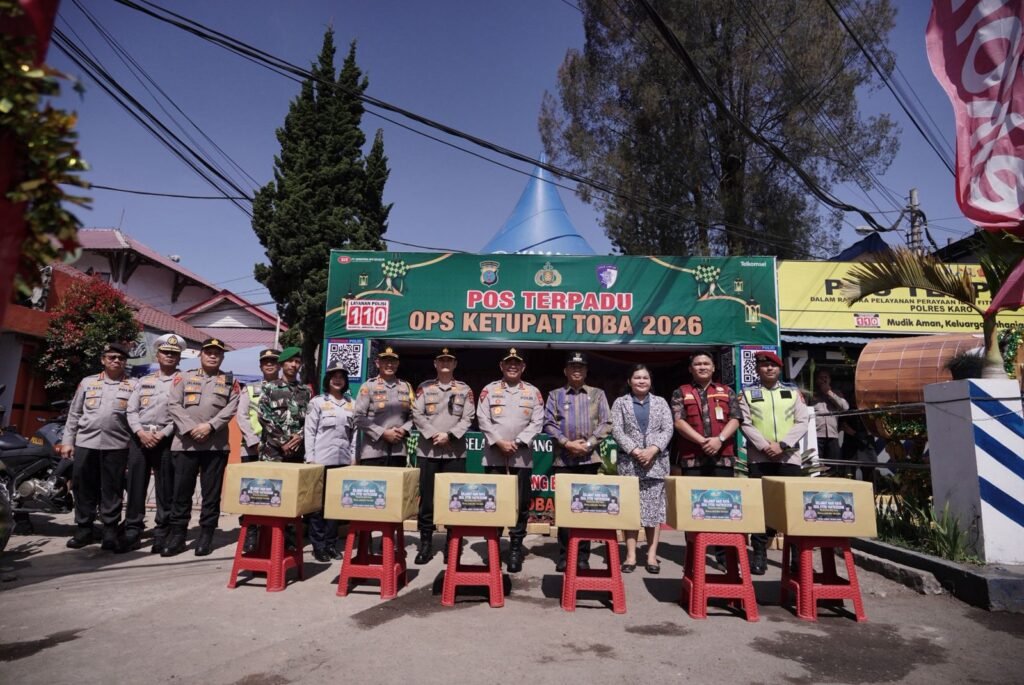 KARODAILY.id, Berastagi– Didampingi Bupati Karo Brigjen Pol (Purn) Dr. dr. Antonius Ginting, Sp.OG., M.Kes., Kapolda Sumatera Utara Irjen Pol Whisnu Hermawan Februanto, S.I.K., M.H., melakukan pengecekan langsung pengamanan arus libur Lebaran dalam rangka Operasi Ketupat Toba 2026 di wilayah Kabupaten Karo, Kamis (26/3/2026).