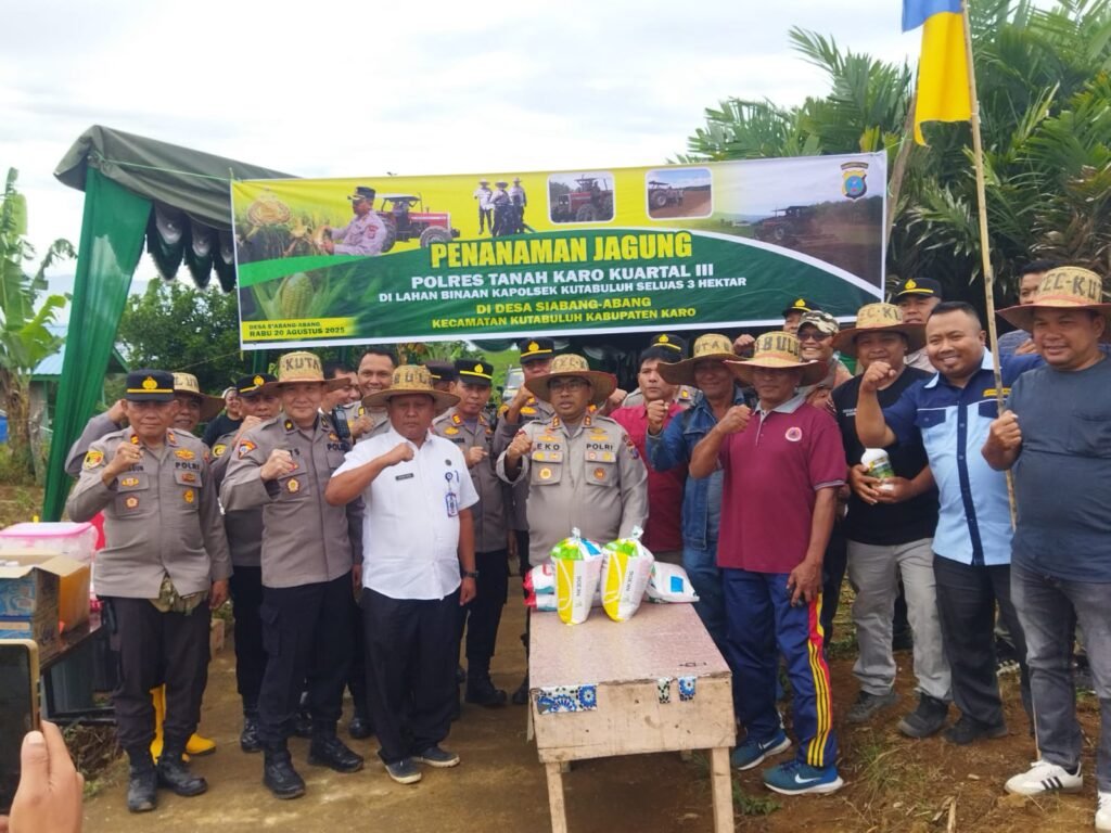 KARODAILY.id, Kuta Buluh – Dalam rangka mendukung program ketahanan pangan nasional, Kapolres Tanah Karo AKBP Eko Yulianto,memimpin kegiatan penanaman jagung di lahan binaan Polsek Kuta Buluh, Rabu (20/08/2025). Kegiatan berlangsung di perladangan Tergayo, Desa Siabang Abang, Kecamatan Kuta Buluh.